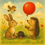 Jedno ráno našel zajíc na louce červený balónek, který musel uletět z nějaké lidské oslavy…